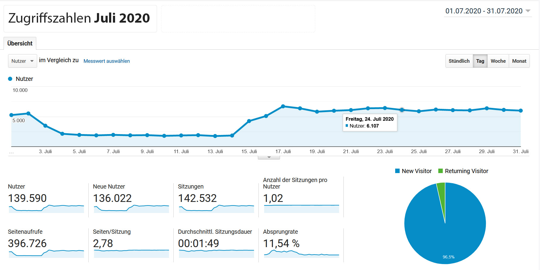Unser Corona-Ticker/Newsflash wurde im Juli in 2 Newslettern an 10.266 Email-Händleradressen versendet und 6.976 mal betrachtet. Eine Beachtungsquote von 68%.