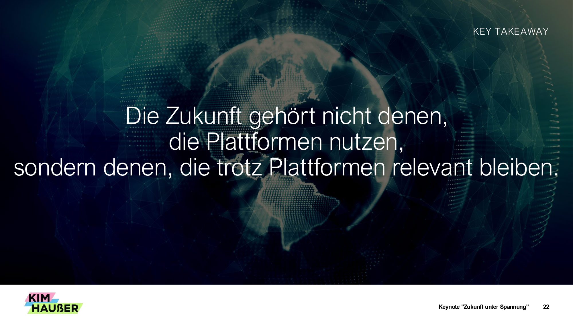 Die wichtigste Erkenntnis der Keynote: „Die Zukunft gehört nicht denen, die Plattformen nutzen, sondern denen, die trotz Plattformen relevant bleiben“. Haußer betont: