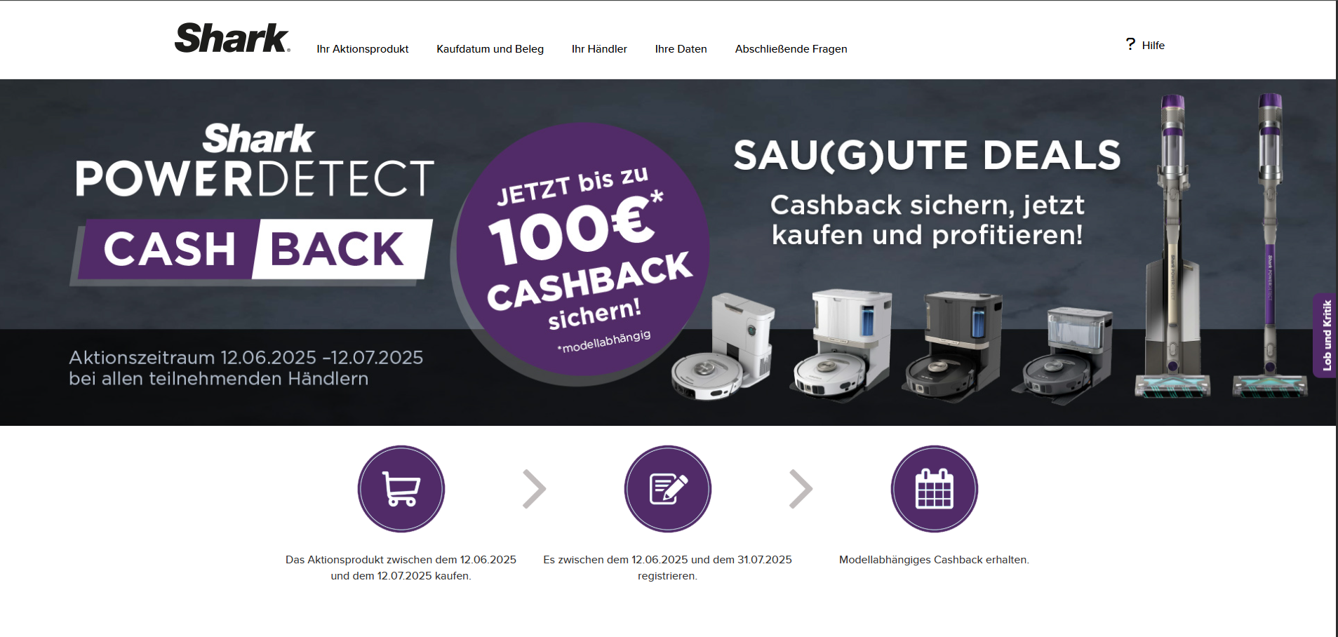 Auch im Bereich der Saugroboter etabliert sich Shark weiter. Im stationären Handel gehört die Marke heute bereits zur Nummer 2 in diesem Segment. Die kanalübergreifende Cashback-Aktion „Shark PowerDetect CashBack – Sau(g)ute Deals“ für Robotersauger und Akku-Staubsauger sorgt seit dem 12. Juni zusätzlich für Aufmerksamkeit im Handel: Endkunden erhalten dabei modellabhängig bis zu 100 EUR Rückvergütung beim Kauf teilnehmender Geräte.