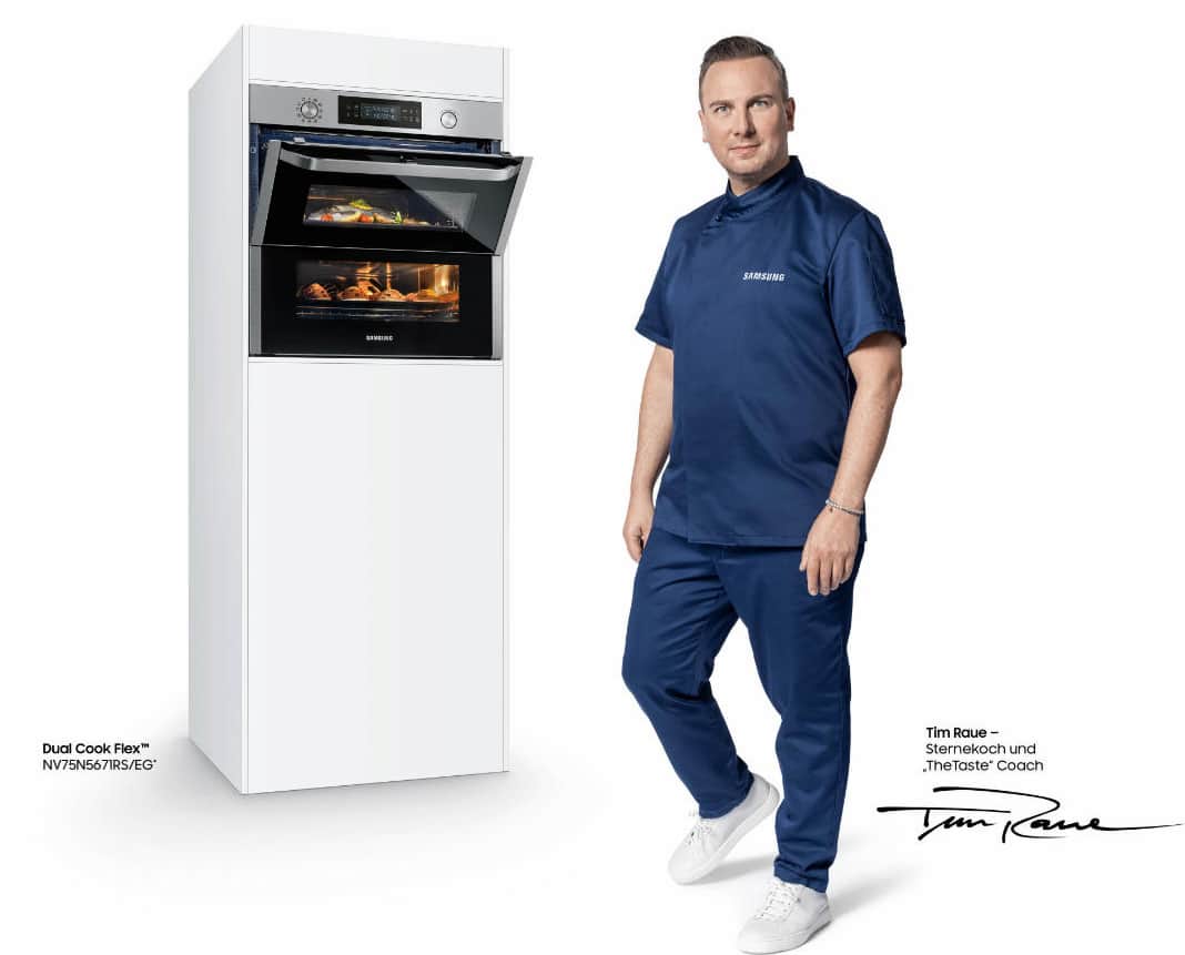 Wie im letzten Jahr sind die Showküchen mit dem Dual Cook Flex ausgestattet. Für eine geeignete Kühlung der Lebensmittel sorgt zudem der Family Hub RF9000. Gleichzeitig ist Sternekoch und Coach der Show Tim Raue als Testimonial für Samsung Hausgeräte im Einsatz und unterstützt die Kampagne über verschiedene Kanäle.